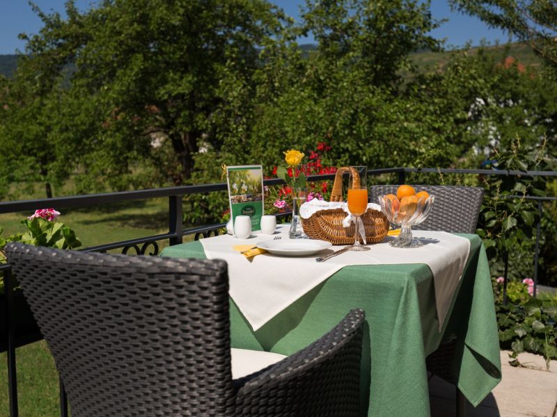 Unsere lauschige Gartenterrasse mit direktem Blick in Nachbar`s Marillengarten lädt zum entspannten Verweilen und Relaxen ein. Genießen Sie hier unser köstliches Frühstück, entspannen Sie am Nachmittag bei einem guten Buch und einer Tasse Kaffee oder beginnen Sie den Abend mit einem Glas Wachauer Wein.