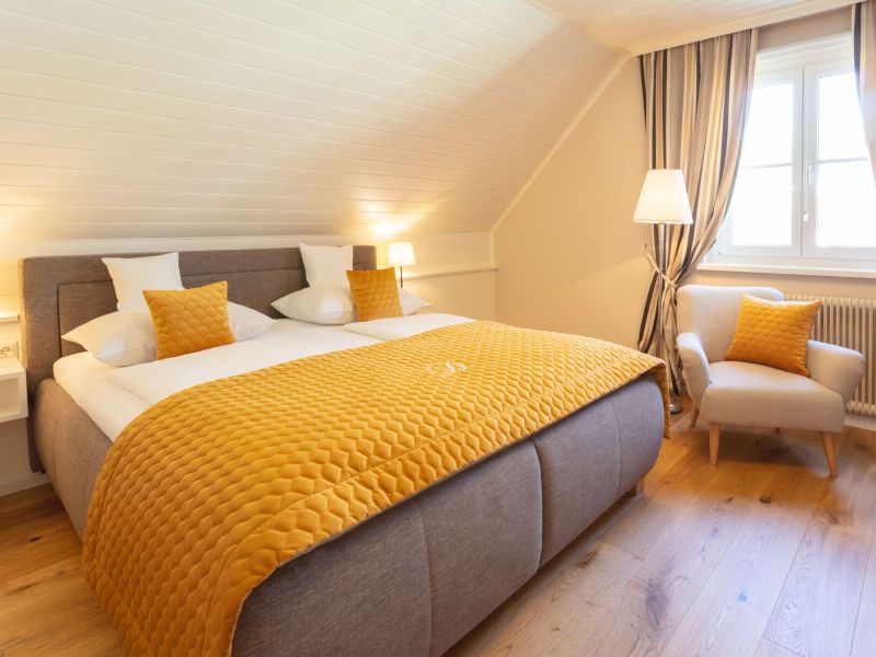 - Doppelbett mit getrennten Matratzen (je 90×200 cm), Einzelbelegung auf Anfrage gegen Aufpreis möglich